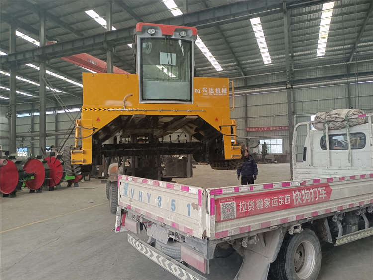 發(fā)貨現(xiàn)場(chǎng)型號(hào)2.4米豬糞履帶翻拋機(jī)裝車出發(fā)