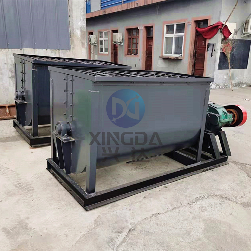 臥式攪拌機是整套有機肥生產線中的一款有機肥攪拌設備。在有機肥生產線中擔當起到攪拌物料的作用。臥式筒體內裝有旋轉反向的漿葉,漿葉成一定角度 將物料沿軸向、徑向循環翻攪,使物料迅速混合均勻。 臥式混合機由電機通過皮帶傳動到減速機帶動軸旋轉。