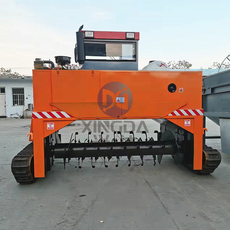 履帶翻堆機的翻堆機操作流程: