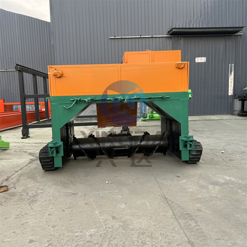 履帶翻堆機屬于地面堆放發酵設備,是目前較節省土建、人力資源的一種制肥模式。需將物料堆成長形條垛由翻堆機定時對物料實施攪拌、破碎,在好氧條件下進行有機物的分解。兼有破碎的功能,大大節省了時間和勞力,使有機肥廠生產效率和產品質量有顯著提高,成本大大降低。不僅比深槽發酵速度快的多,還有效防止了發酵過程中硫化氫、胺氣、吲哚等有害、惡臭氣體的產生,符合環保要求。
