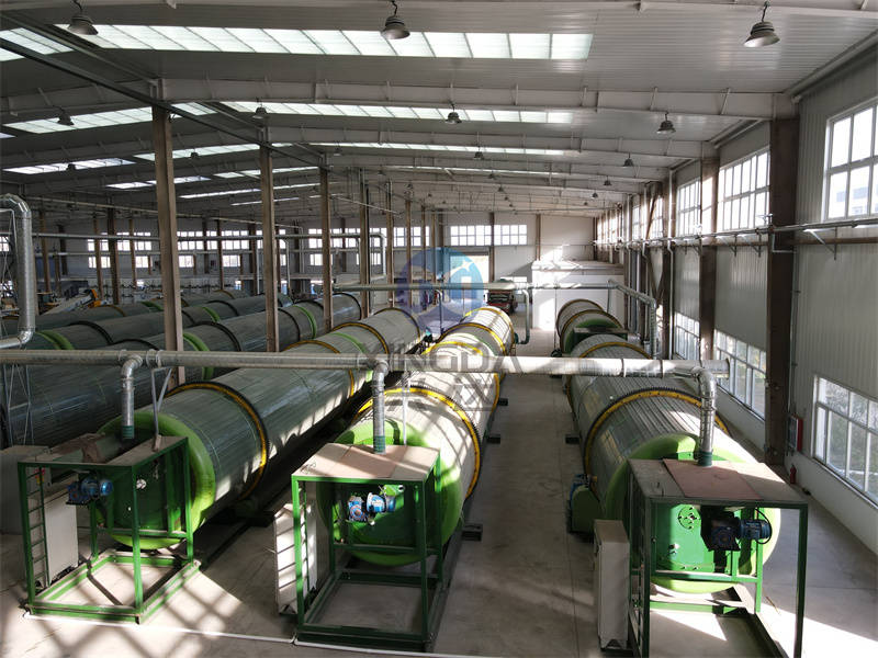 有機肥免烘干生產線里的污泥,一般含水量比較高,在75%—80%左右,一般都經過厭氧發酵過有害菌含量不高,運回發酵廠時應先將含水量低的原料鋪放到發酵槽的下面,然后向上面鋪放混淀垃圾,使其中的液態有機肥充分利用,可增加原料中的各種養分充足,在發酵中物料的含水量在50%—55%即可.