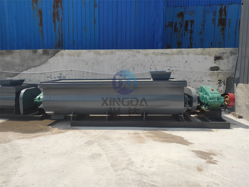 有機肥雙軸攪拌機具有攪拌效率高占地面積少。螺旋葉片采用高耐磨特種合金。雙軸濕式攪拌機采用減速器傳動,轉動平穩,噪音低。雙軸攪拌機從頂部進料、底部排料結構合理。各結合面之間的密封嚴密運行平穩。