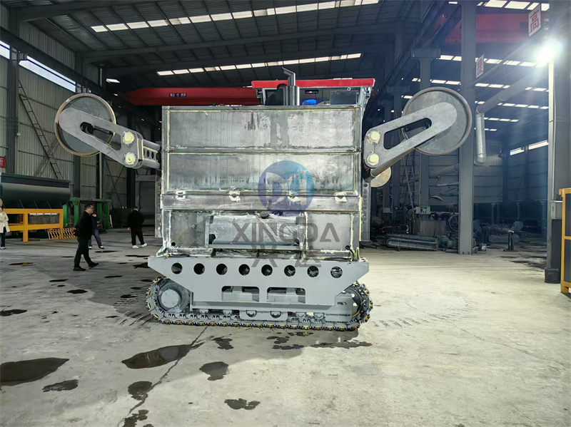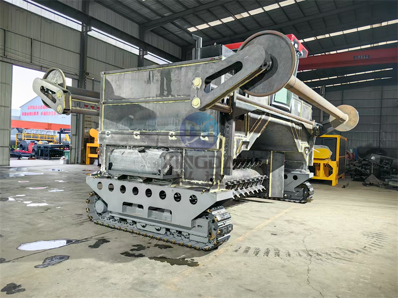 車間里正在制作客戶定制的5米全液壓有機肥翻拋設備履帶翻拋機: