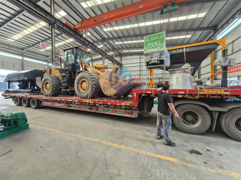 貴州客戶4米寬的液壓式槽式翻拋機與鏟車料倉一起裝車發貨:液壓槽式翻拋機具有發酵物料堆積高、翻堆產量大、物料翻動徹底等優點,是大規模有機肥發酵的理想選擇。 特色的軌道設計,既改變了傳統的單純用輕軌行走的翻堆機產量低的缺點,又克服了常規的齒條、輕軌傳動翻堆機 傳動輔件造價高的缺點,該設備乃是如今有機肥生產線必配發酵設備。
