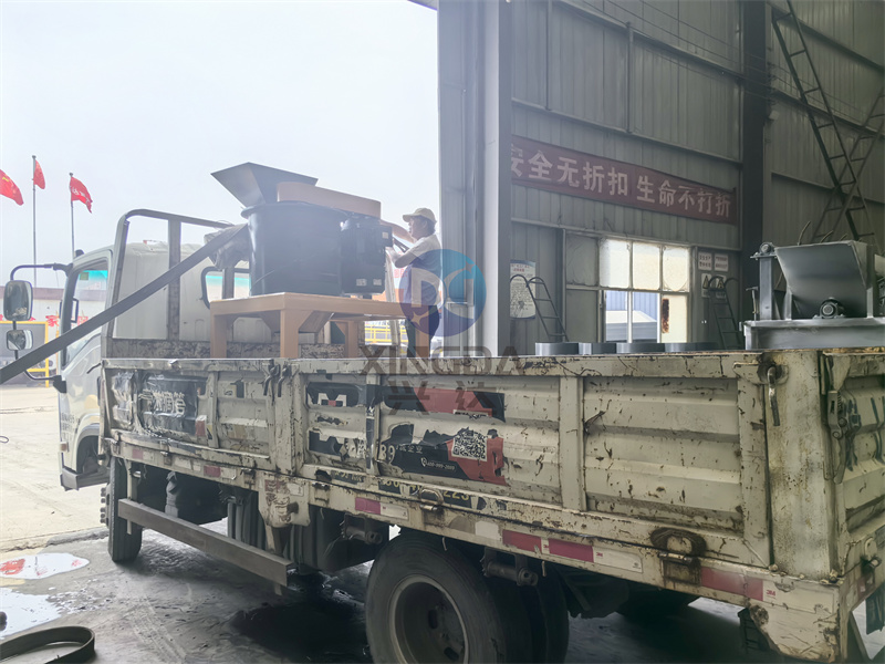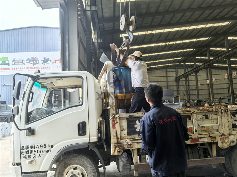 準備發貨:一臺發往遵義的60式立式粉碎機裝車正在車間裝車