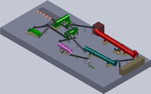 1. 主要是將物料(牛糞.羊糞.豬糞.雞糞.污泥.沼渣.稻草.玉米秸)等動(dòng)物糞便有機(jī)廢棄物經(jīng)過發(fā)酵腐熟以后含水分約30%-35% 的有機(jī)廢棄物經(jīng)粉碎篩分后,與黏結(jié)劑(膨潤土.腐殖酸)及需配比的其他成分的原料按配比要求在配料混合系統(tǒng)中進(jìn)行計(jì)量、(添加功能菌可生產(chǎn)生物有機(jī)肥,添加氮、磷、鉀(總養(yǎng)分含量低于15%)可生產(chǎn)有機(jī)無機(jī)肥)配料、混合,經(jīng)充分混合后的物料由皮帶輸送機(jī)均勻連續(xù)的喂入造粒機(jī)中,經(jīng)拋光整形機(jī)拋圓成球狀顆粒,經(jīng)烘干機(jī)進(jìn)行低溫大風(fēng)量烘干(≤65℃)后進(jìn)行冷卻、篩分,成品顆粒由皮帶輸送到成品料倉,經(jīng)電腦定量包裝系統(tǒng)計(jì)量、包裝入庫。