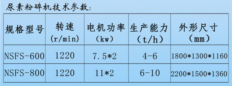 尿素粉碎機技術參數: