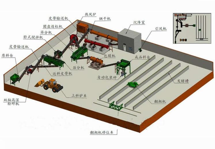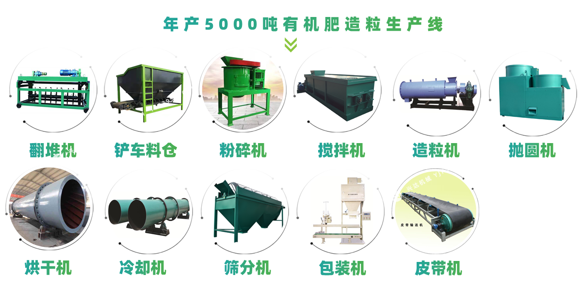 主要是將物料(牛糞.羊糞.豬糞.雞糞.污泥.稻草.玉米秸)等動(dòng)物糞便有機(jī)廢棄物經(jīng)過發(fā)酵腐熟以后含水分約30%-35% 的有機(jī)廢棄物經(jīng)粉碎篩分后,與黏結(jié)劑(膨潤土.腐殖酸)及需配比的其他成分的原料按配比要求在配料混合系統(tǒng)中進(jìn)行計(jì)量、(添加功能菌可生產(chǎn)生物有機(jī)肥,添加氮、磷、鉀(總養(yǎng)分含量低于15%)可生產(chǎn)有機(jī)無機(jī)肥)配料、混合,經(jīng)充分混合后的物料由皮帶輸送機(jī)均勻連續(xù)的喂入造粒機(jī)中,經(jīng)拋光整形機(jī)拋圓成球狀顆粒,經(jīng)烘干機(jī)進(jìn)行低溫大風(fēng)量烘干(≤65℃)后進(jìn)行冷卻、篩分,成品顆粒由皮帶輸送到成品料倉,經(jīng)電腦定量包裝系統(tǒng)計(jì)量、包裝入庫。