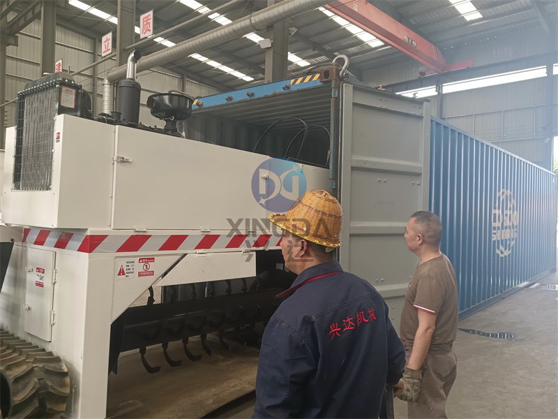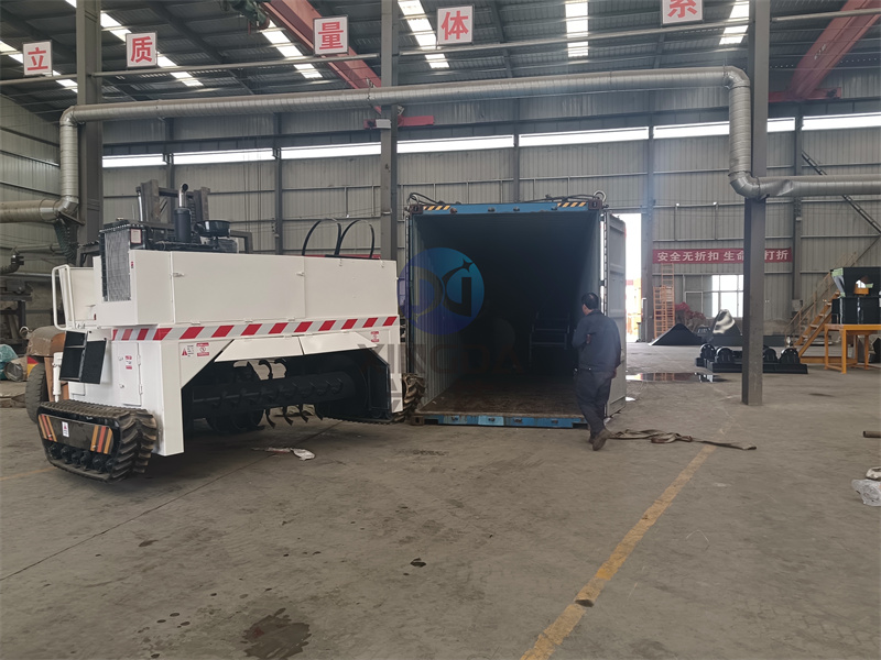 有機肥翻拋設備履帶翻拋機裝箱發貨準備出口