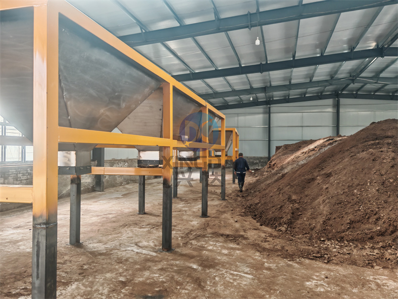 祁陽現場第二套不銹鋼材質有機肥十倉智能配料生產線正在安裝中: 不銹鋼有機肥生產線主要是將物料等動物糞便有機廢棄物經過發酵腐熟以后含水分約的有機廢棄物經粉碎篩分后,與黏結劑及需配比的其他成分的原料按配比要求在配料混合系統中進行計量,配料,混合,經充分混合后的物料由皮帶輸送機均勻連續的喂入粉碎