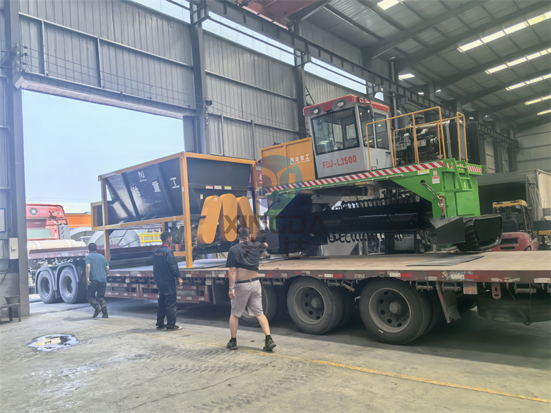 寧夏定制的污泥鏟車料倉履帶翻拋機等有機肥生產線設備的正在裝車:大家都知道,有機肥設備是一種節能、環保的農家肥生產設備,它可以把各種有機廢棄物(如生活垃圾、廚余垃圾、農業廢棄物等)經過堆肥發酵,轉化為有機肥料,大大提高農家肥的品質和產量,為農業綠色發展助力。 污泥鏟車料倉是有機肥設備的重