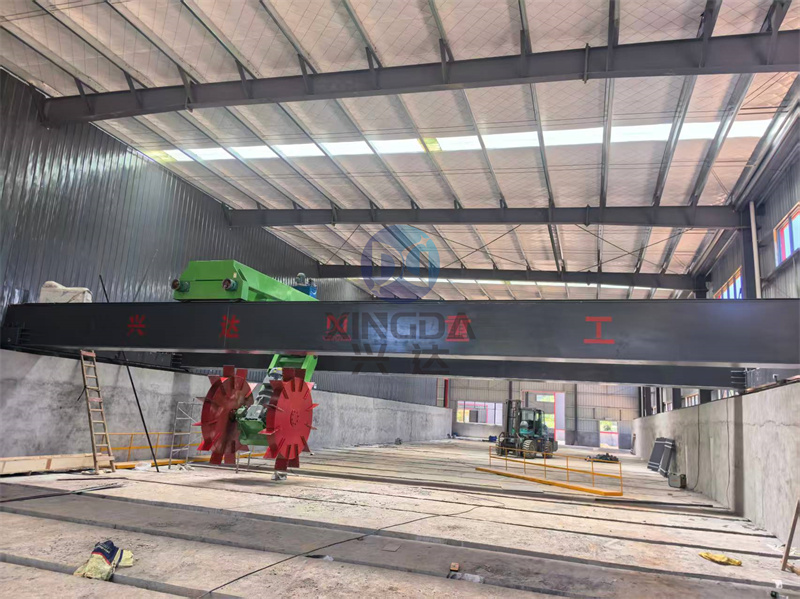米寬的液壓輪盤式翻拋機正在客戶現場進行安裝: 輪盤式翻拋機是整套有機肥生產線中的一款有機肥翻堆設備。在有機肥生產線中擔當起到翻拋物料的作用。輪盤式翻拋機設備采用中間鏈條傳動機構,帶動兩大直徑翻拋輪盤,對稱翻拋,無死角可調速移位小車,左右位移,低能耗完成大跨距翻拋工作。液壓系統運轉