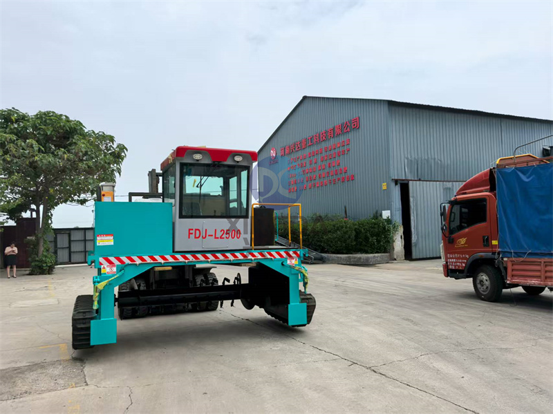 發往山東的一臺型履帶翻拋機馬上就要駛了有機肥設備廠家: 履帶翻堆機是一種農業機械設備,主要用于大規模農場和牧場的堆肥處理。它通過其獨特的履帶設計,能夠在各種地形上穩定移動,包括泥濘、不平或濕滑的地面。這種設備通常配備有強大的旋轉刀片系統,能夠有效
