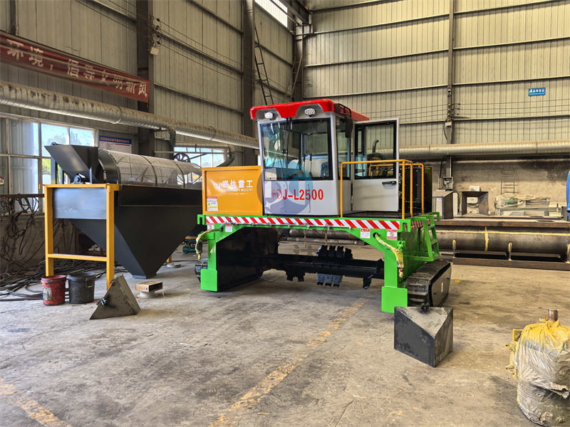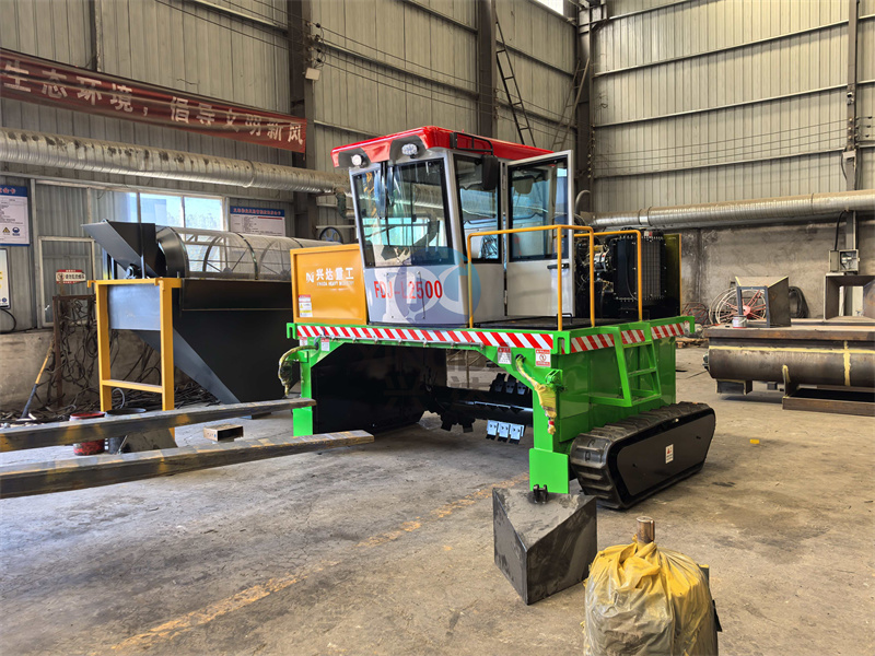 安徽又定購一臺有機肥履帶翻拋機,準備開始裝車:履帶翻堆機通常由動力系統、傳動裝置、翻拋機構和控制系統組成。動力系統一般采用柴油發動機或電動機,提供足夠的動力以驅動履帶和翻拋機構工作。傳動裝置則負責將動力傳遞到各個工作部件,確保設備運行平穩可靠。翻拋機構是核心部分,通過旋轉的刀片或耙齒將有機