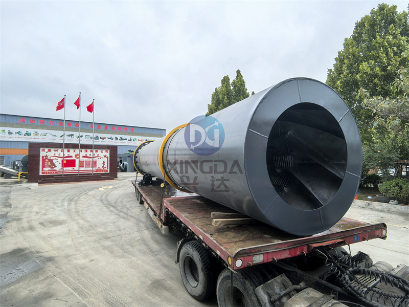 第二車發往日照有機肥設備1.8米滾筒式烘干設備正在裝車:滾筒式烘干機的結構及工作原理主要由供熱源、上料機、進料機、回轉滾筒、物料破碎裝置、出料機、引風機、卸料器 和配電柜構成;脫水后的濕物料加入干燥機后,在滾筒內均布的抄板器翻動下,物料在干燥機內均勻分散與熱空氣充分接觸,加快了干燥傳熱、傳質。在干燥過程中,物料在帶有傾斜度的抄板和熱氣質的作 用下,至干燥機另一段星形卸料閥排出成品。